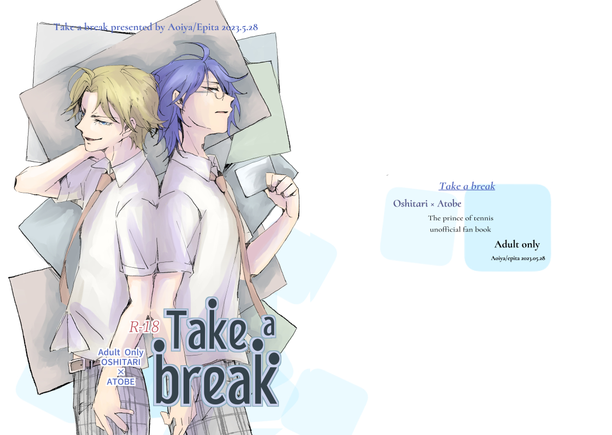Take a Break テニスの王子様 忍跡 A5|28P|2023.5.28 成人向け|イベント価格:400円 Booknook vol2(オールジャンル) 休息とは?労いのかたちが不思議な2人の話。 通販休止中