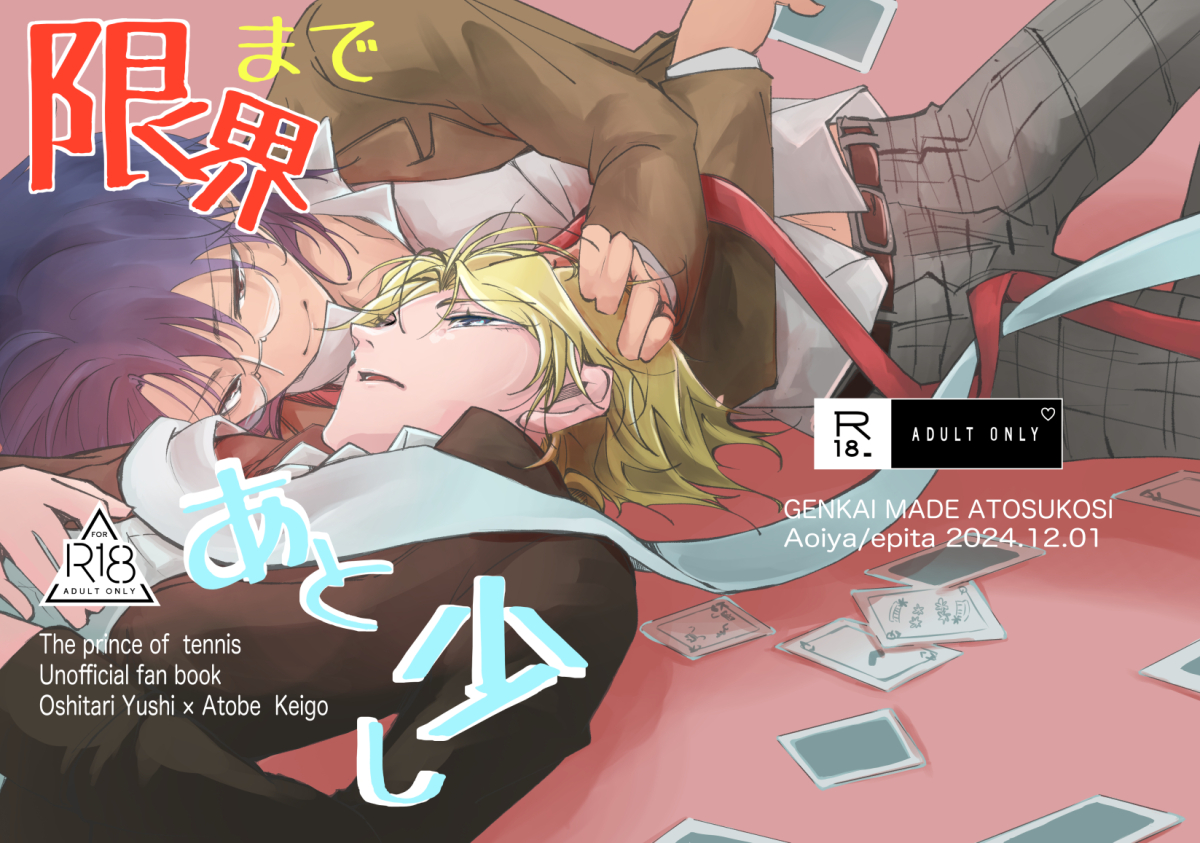 限界まであと少し テニスの王子様 忍跡 A5|52P|2024.12.01 成人向け|イベント価格:500円 DOZEN ROSE FES 2024 忍ぶれど透ける恋の跡 跡部が氷帝留守中いつも通りに過ごしているつもりだった忍足の話。 通販休止中